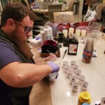 - Mixing and pouring resin for the dice into the molds
