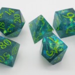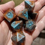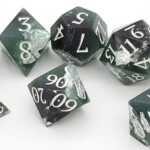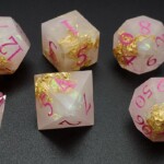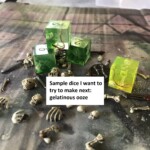 I get a lot of my inspiration from the Facebook group I’m in, as well as following professional dice makers on Twitter and Etsy. I save their pictures and review my inspiration folder when I want to make dice. Here are just a few examples of dice I’ve wanted to try and make: