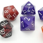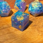 There are a lot of options you can choose from when making dice, but let’s start with the resin itself. Being a barely intermediate dice maker, I’ve only worked with 1 kind of resin: epoxy. There’s also UV resin, which cures under a UV light (great for doing layers and multi-tone dice), and probably some others that we have not yet looked into. We went with 2 part epoxy resin simply because it was recommended by Rybonator, who was our first tutor into our dice making foray.